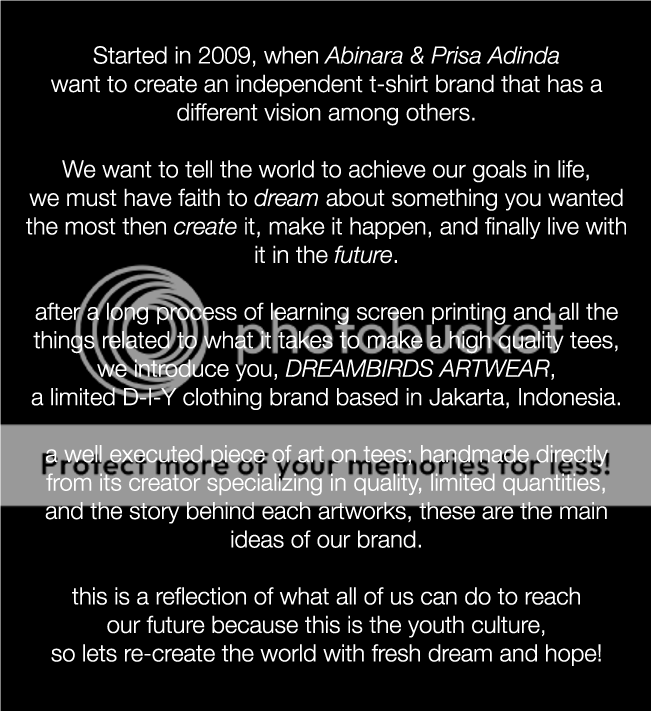 Dreambirds™ is a fresh new art wear based in South Jakarta,Indonesia and planning to open the official store in 2010.We're an anti-imitating clothing line, with a specialized screenprinting process and customized comforting fabrics, Dreambirds™ will make you go wild and beyond normal, literally.
